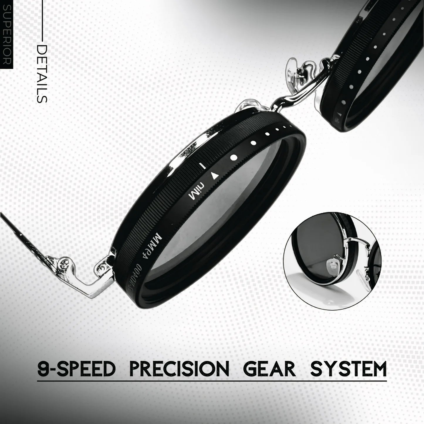 These sunglasses feature a smart lens system with 9 adjustable tint levels, allowing you to easily change the darkness of the lenses to match your environment — from harsh sunlight to shaded areas or even indoors. Adjustment is quick and effortless, ensuring optimal eye comfort in any lighting condition.
